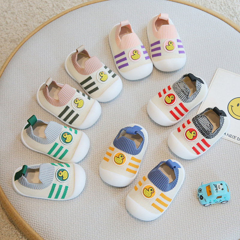 Add cuteness and comfort to your little oneβs steps with the Baby Duck Knit Slip-On Shoes! Designed with soft breathable knit fabric, flexible soles, and an adorable duck patch, these shoes are perfect for babies and toddlers learning to walk. The slip-on style makes them easy to wear, while the colorful stripe patterns bring extra charm.