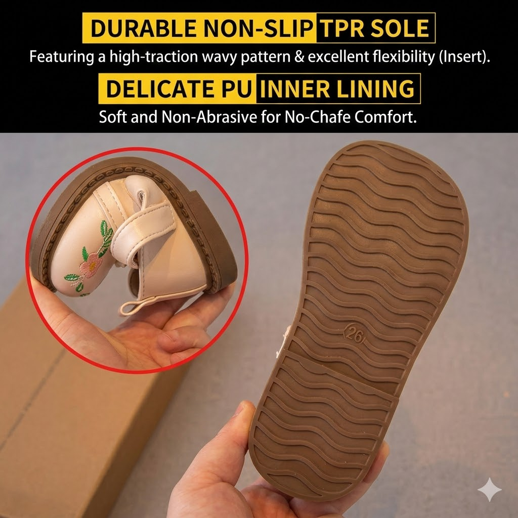 Let your little one bloom in style with the Floral Princess Mary Jane Shoes. Designed with delicate 3D floral details and beautiful embroidery, these charming shoes bring elegance and comfort together in one perfect pair.