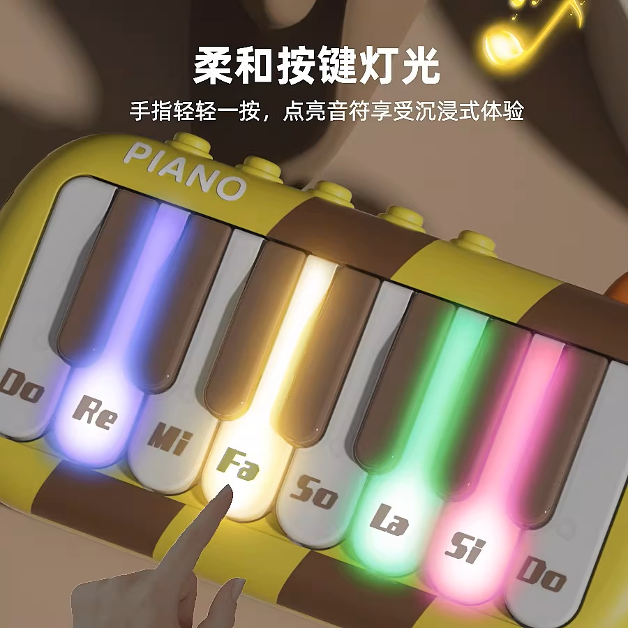 Featuring 8 high-response keys labeled with Solfège syllables (Do, Re, Mi...), this toy bridges the gap between play and education. Each key lights up upon touch, providing instant visual feedback that teaches cause and effect. The tactile buttons on the top allow children to switch between instrument sounds or play pre-set melodies, keeping the experience fresh and engaging. Built from shatter-proof, BPA-free ABS plastic, it’s tough enough for toddler "enthusiasm" and safe for curious mouths.