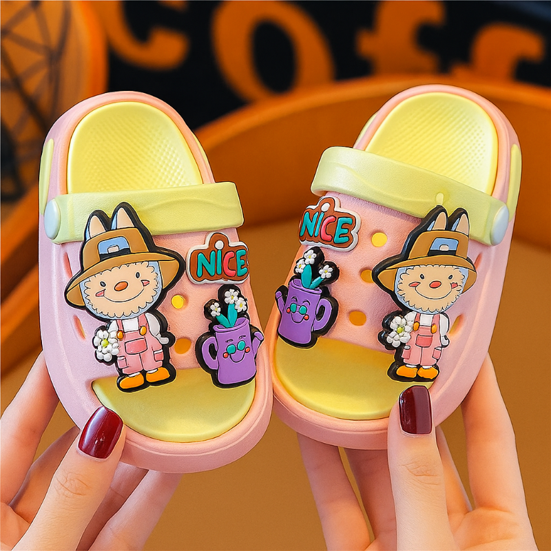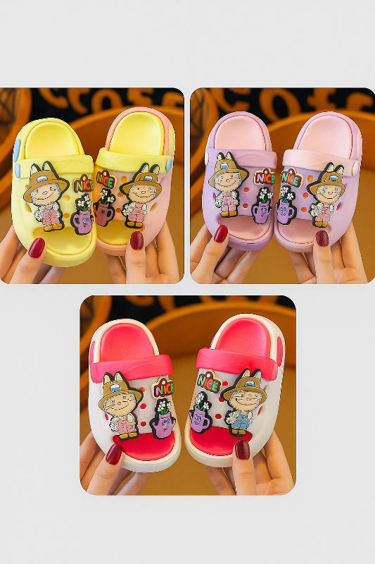 These bright and cheerful sandals feature adorable cartoon designs that kids instantly fall in love with. Made from soft, lightweight EVA material, they offer perfect comfort for growing feet. The anti-slip sole ensures safe movement on any surface, while the back strap provides a secure fit for both indoor and outdoor adventures.