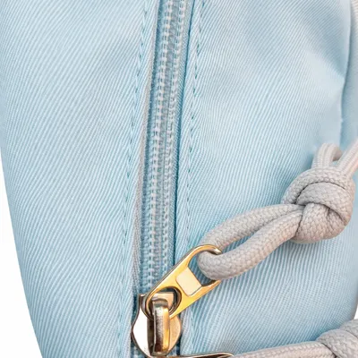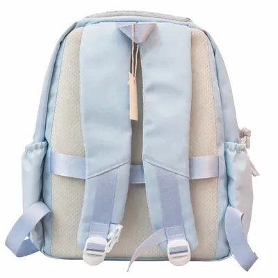 A charming and practical kids backpack designed in soft sky blue and cream tones with adorable bear and bow prints. It features a spacious main compartment, a front zip pocket, side pockets, and a cute matching mini pouch for small essentials. Lightweight, stylish, and comfortable to carry, this backpack is perfect for school, travel, and everyday use.