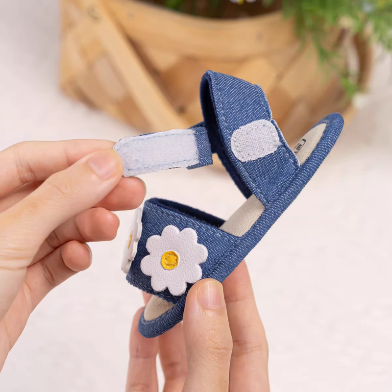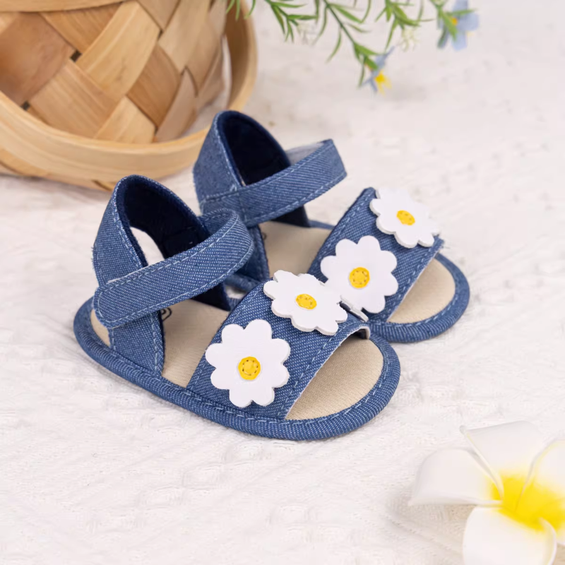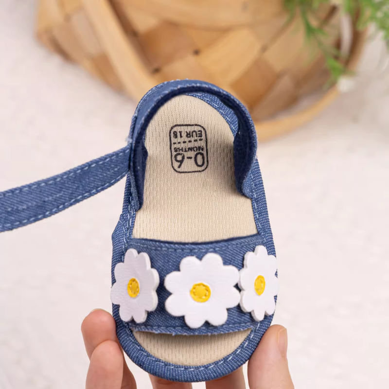 Available in classic white and stylish denim blue, these sandals are a delightful combination of comfort, durability, and cute seasonal style — ideal for everyday wear or special occasions. 🌼