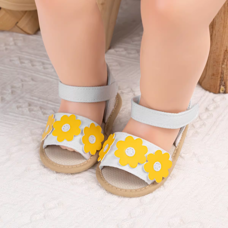Made with soft, lightweight materials, they provide breathable comfort for tiny feet throughout the day. The cushioned insole offers gentle support, while the adjustable hook-and-loop ankle strap ensures a secure and easy fit. The flexible sole allows natural movement, making them perfect for walking, playing, and summer outings.