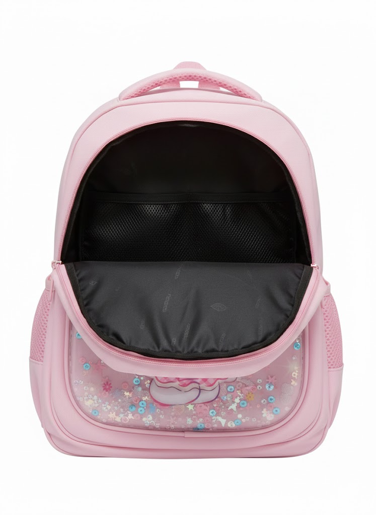 Sparkle & Storage: Includes a large-capacity main compartment for folders and notebooks, plus two reinforced side mesh pockets for water bottles.