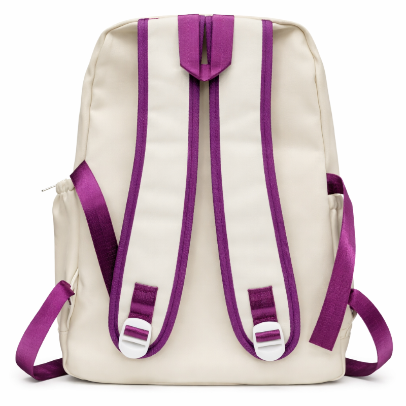 A cute and playful kids' backpack featuring a colorful panda design. This cream-colored bag offers ample storage with a spacious main compartment, front pocket, and side pockets. The adjustable padded straps provide comfort, making it perfect for school, daycare, or travel. Fun and functional with adorable accents, this backpack is ideal for young adventurers.