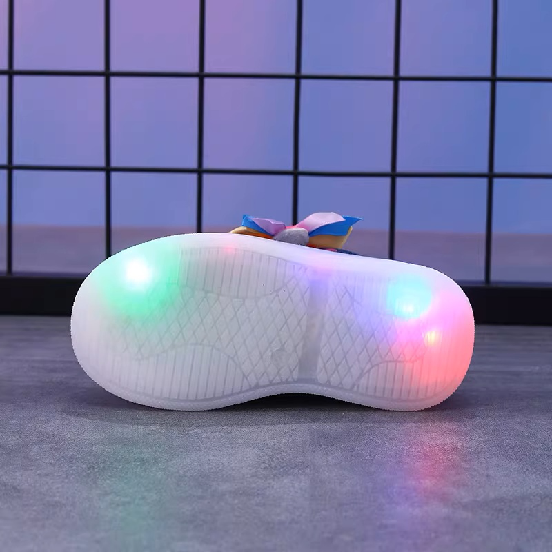 Vibrant LED Soles: Integrated multi-color flashing lights (green, blue, and pink/red) activate during movement.