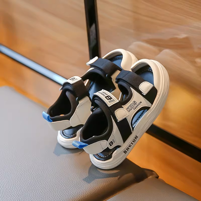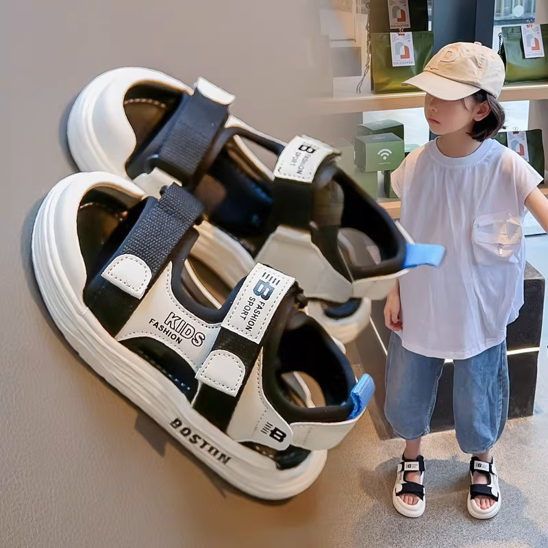 Featuring a striking contrast black-and-white colorway and bold "BOSTON" branding, these sandals utilize a breathable mesh and faux-leather upper to keep feet cool during active play. The ultra-lightweight chunky EVA sole provides superior shock absorption and "bounce," making them perfect for all-day wear. With a secure dual-strap Velcro system, kids can slip them on and off independently, ensuring a snug fit for every adventure.