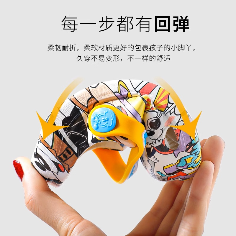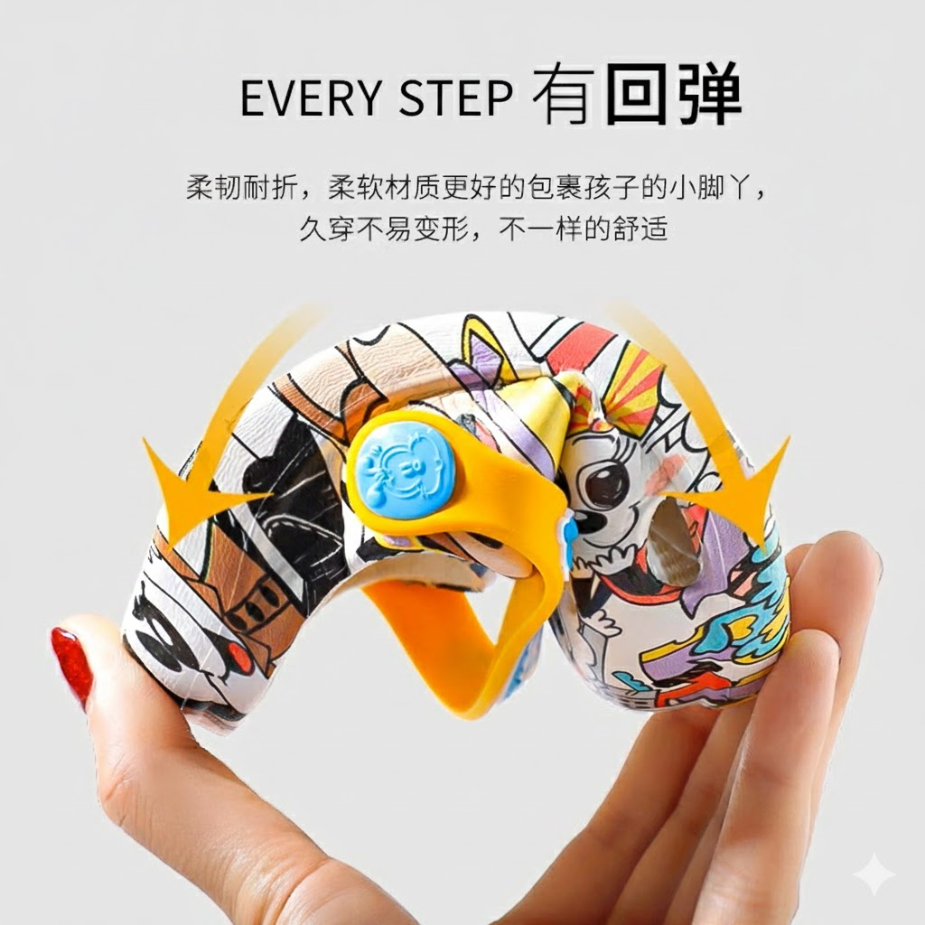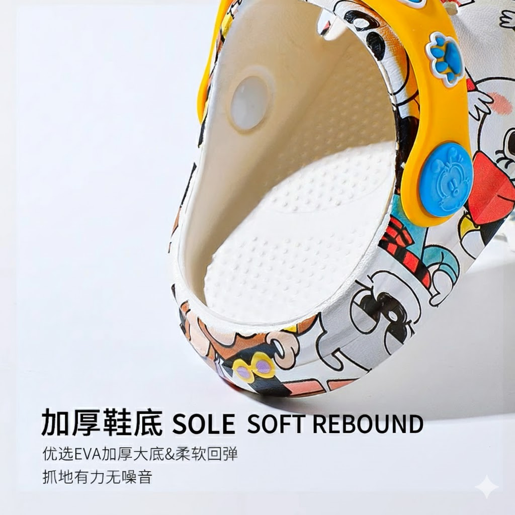 These adorable and colorful sandals feature a lively cartoon pattern that kids instantly love. Made from
