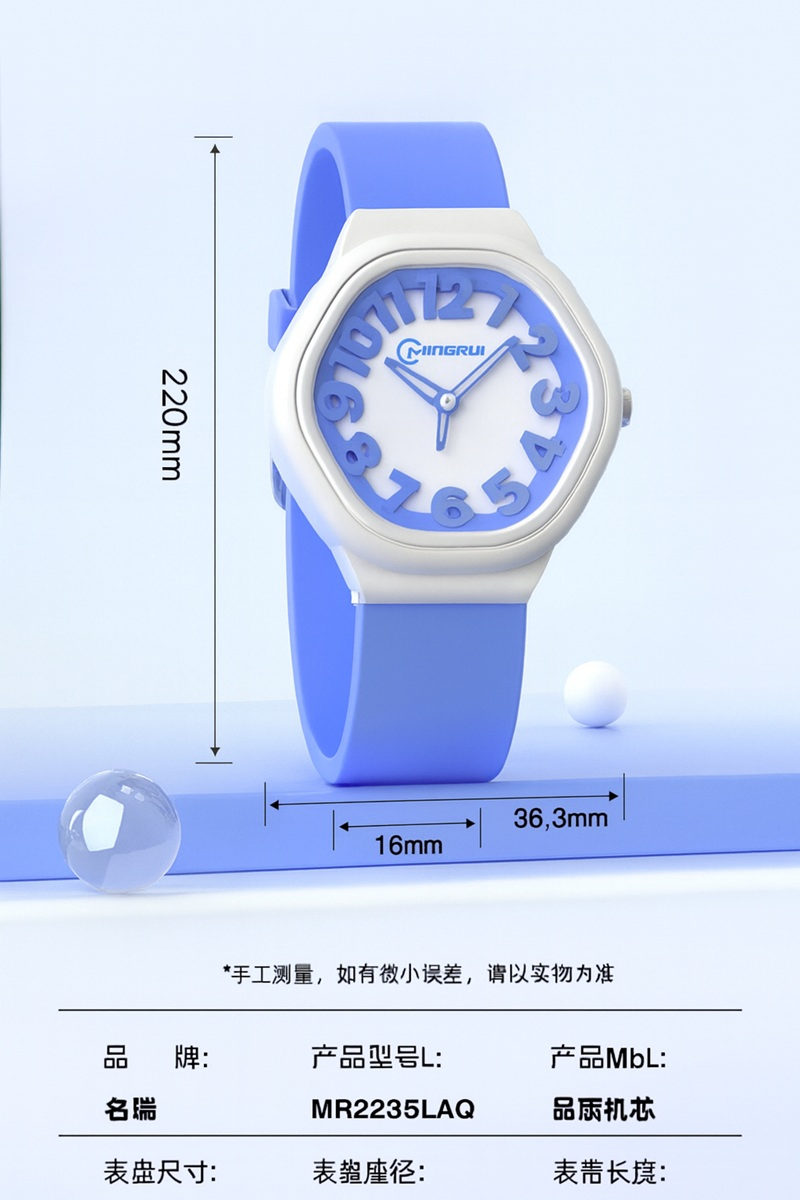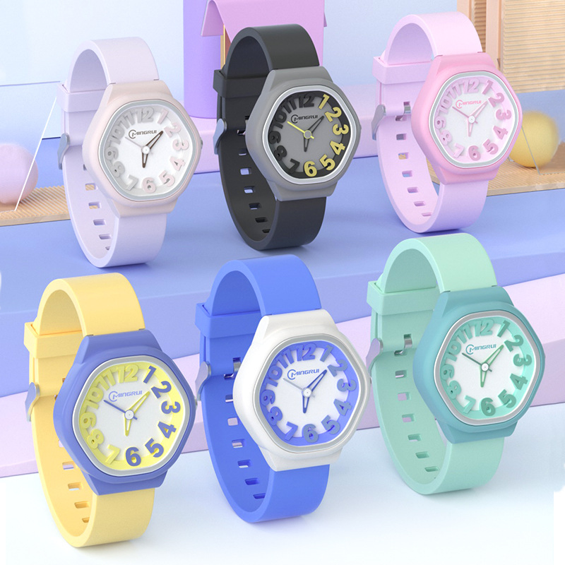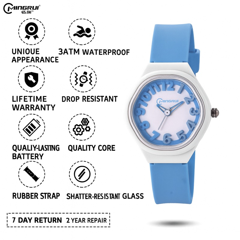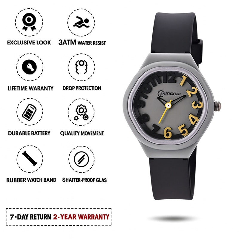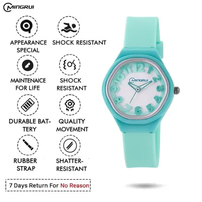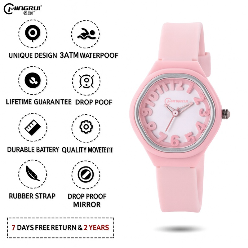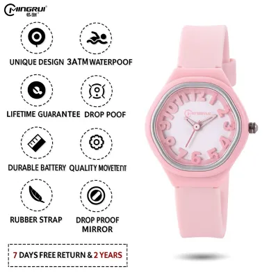 Bright, bold, and full of fun! The Mingrui ColorPop Kids’ Analog Watch is designed to make every moment colorful and exciting. With its playful 3D number dial, soft pastel strap, and lightweight design, it’s the perfect everyday accessory for little trendsetters.
