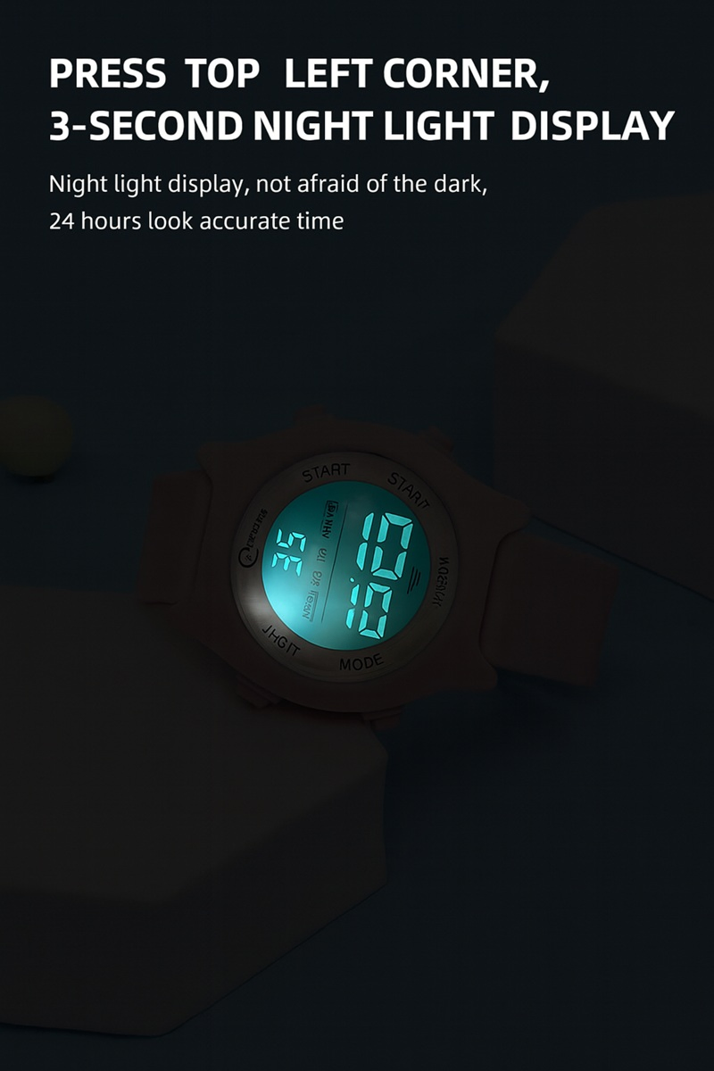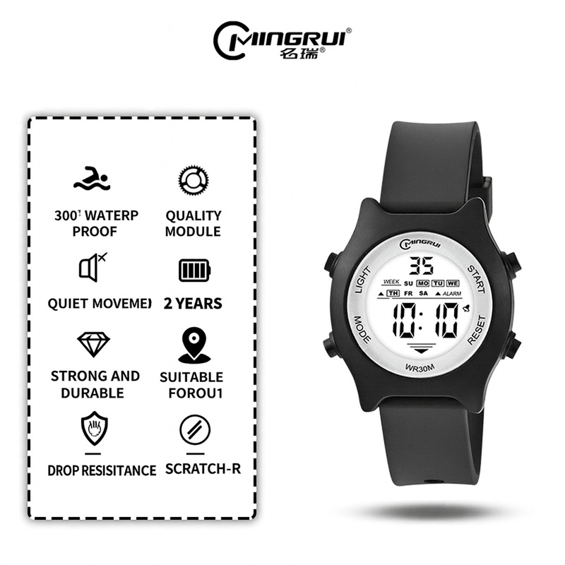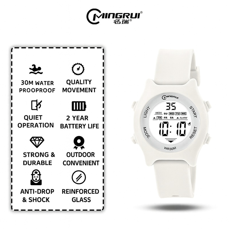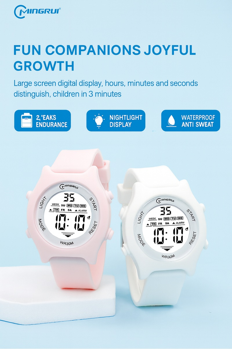Keep it simple, stylish, and smart with the Mingrui Minimal Digital Sports Watch — the perfect everyday companion for kids and teens. Designed with a sleek digital display and soft-touch silicone strap, this watch combines fashion with functionality.