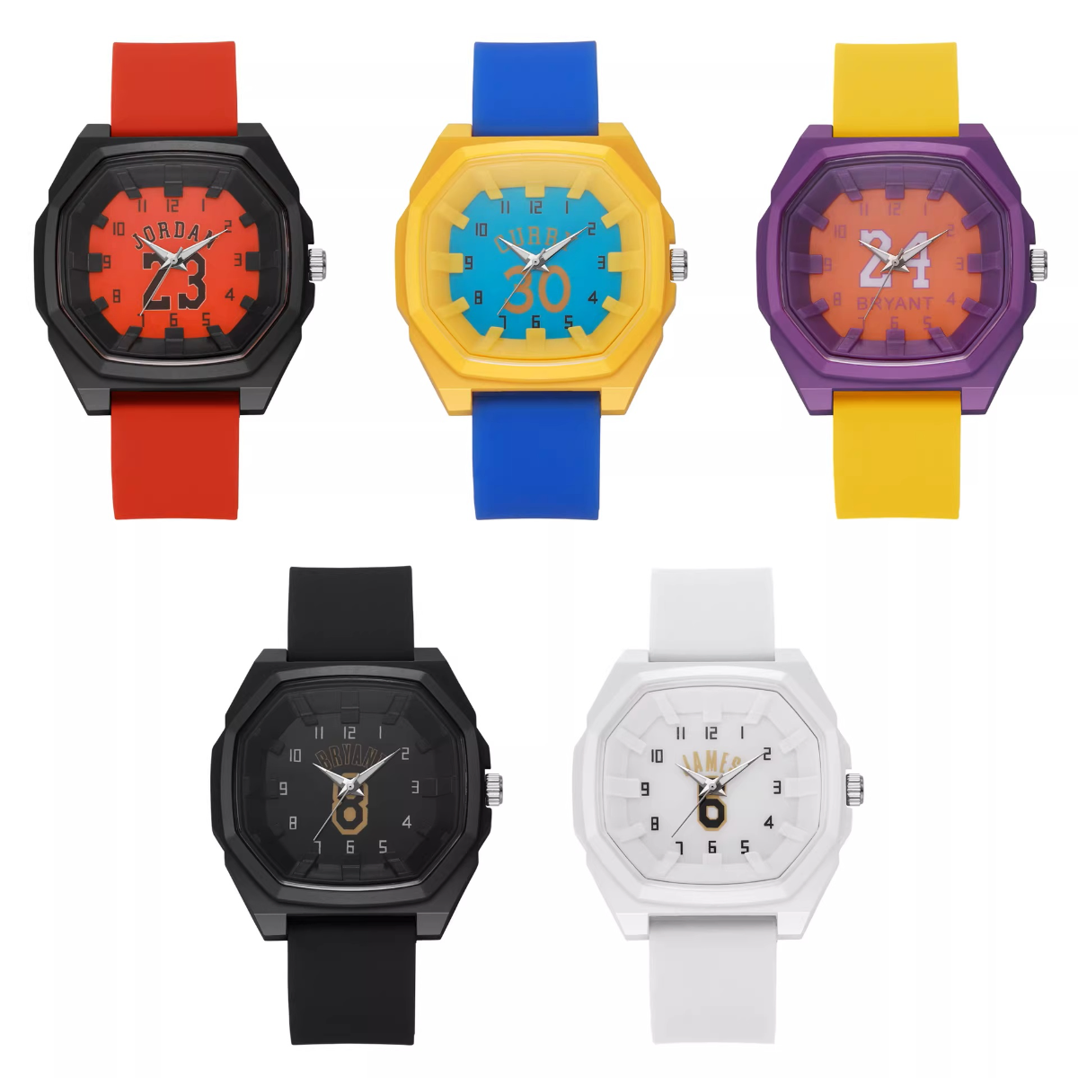 Celebrate your favorite icons of the game with the Courtside Legend Series. These bold, octagonal timepieces are designed for the ultimate sports fan, blending high-energy aesthetics with durable everyday functionality. Each watch features a unique color palette and jersey-inspired numbering that pays tribute to basketball greatness.