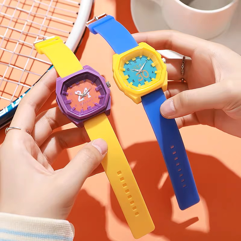 Contrast Dials: Bold hour markers and luminous-style hands provide easy readability against vibrant background colors.