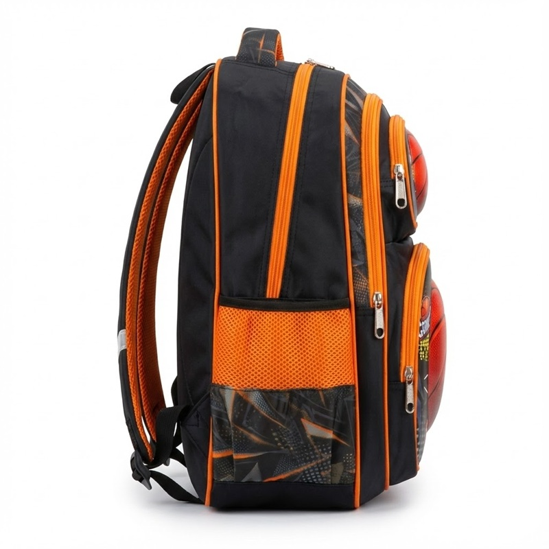 Designed with a vibrant 3D basketball print, this bag is perfect for young sports lovers. It offers a large main compartment for books, notebooks & files, a spacious front pocket for lunch/pencil items, and two side mesh pockets for water bottles.