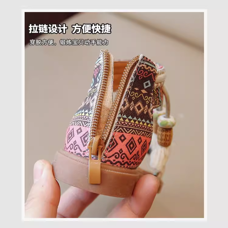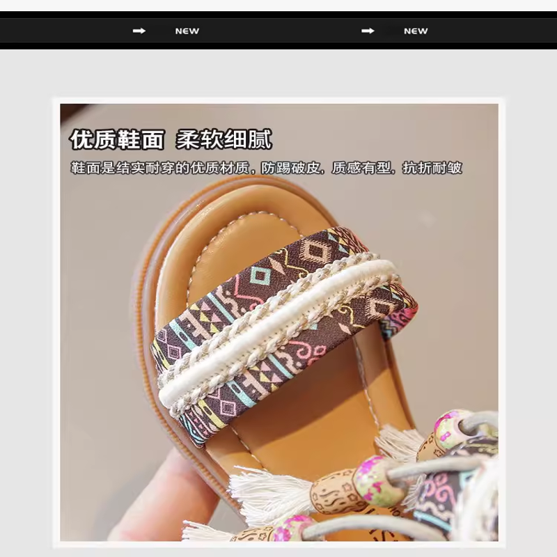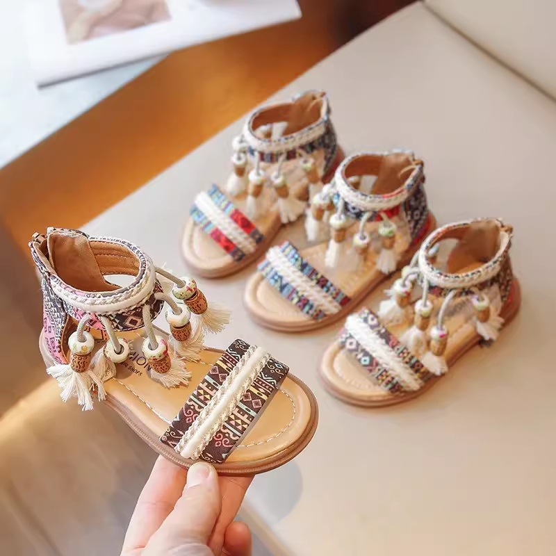 Kid-friendly comfort designCrafted with vibrant woven straps and decorative tassels, these sandals bring a trendy bohemian look that stands out. The detailed patterns and soft fringe accents make them both fashionable and fun