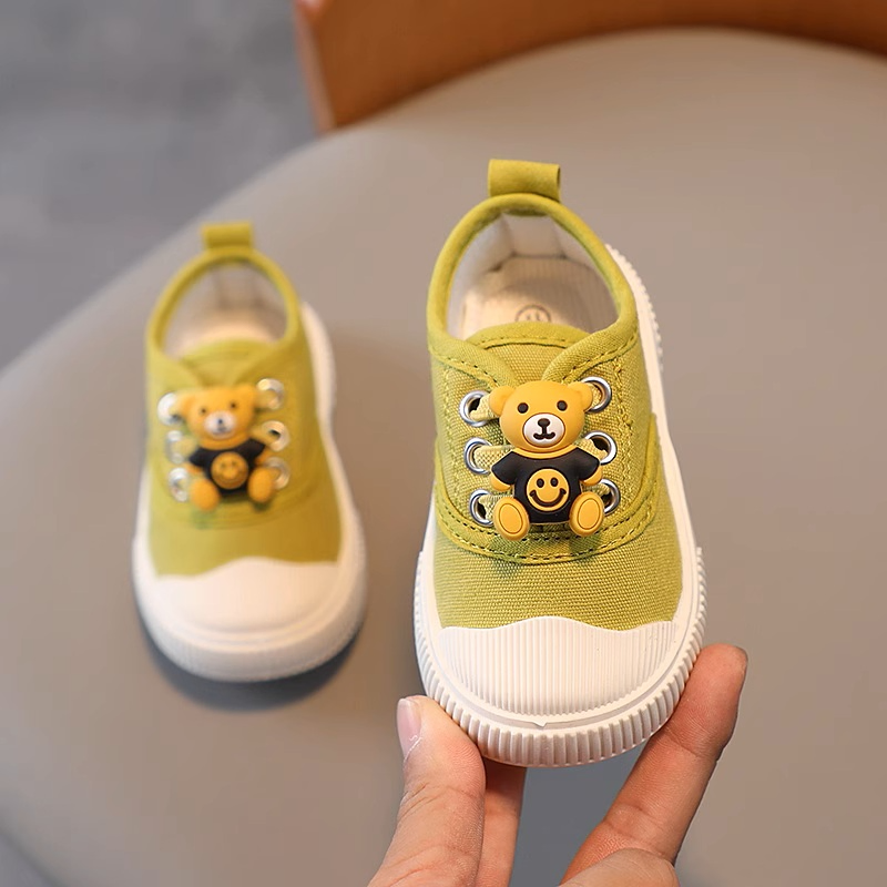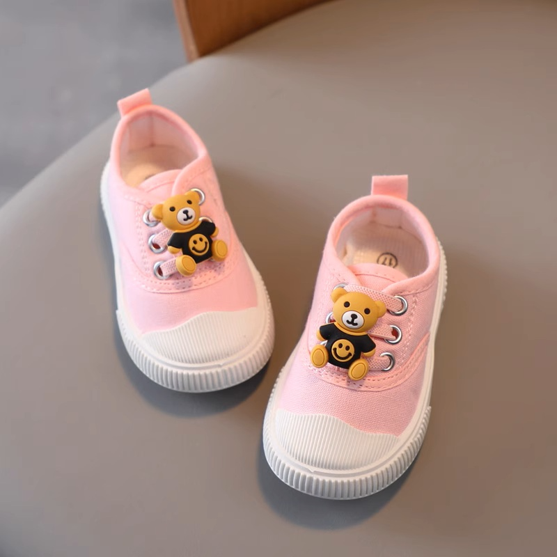 These premium soft-canvas shoes feature an adorable 3D teddy bear decoration on the laces, making them a fun favorite for kids. The breathable canvas material keeps feet cool, while the soft cushioned insole ensures all-day comfort.
