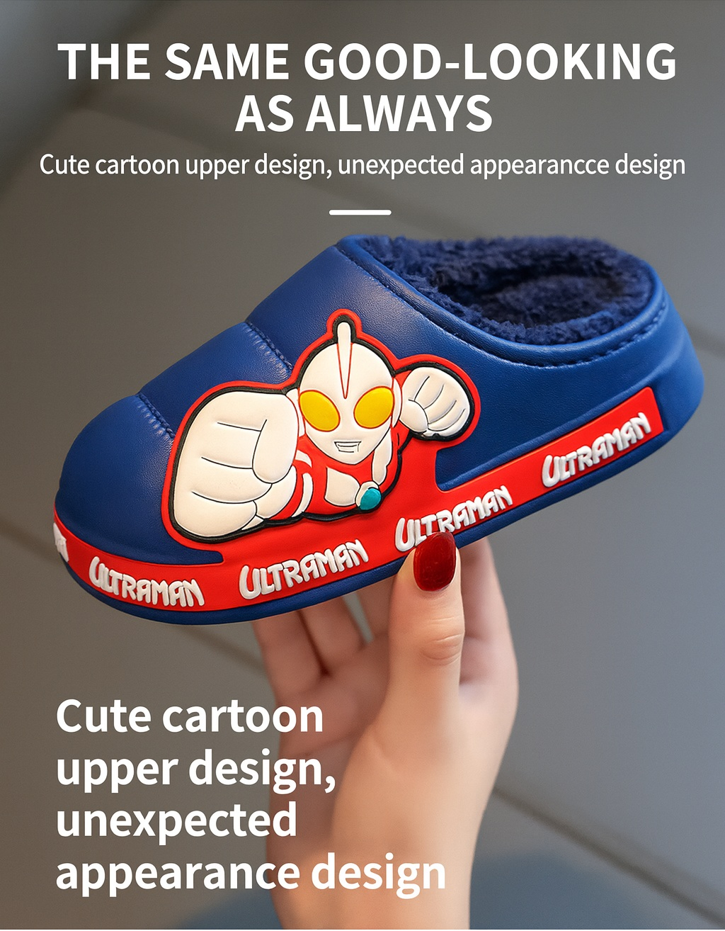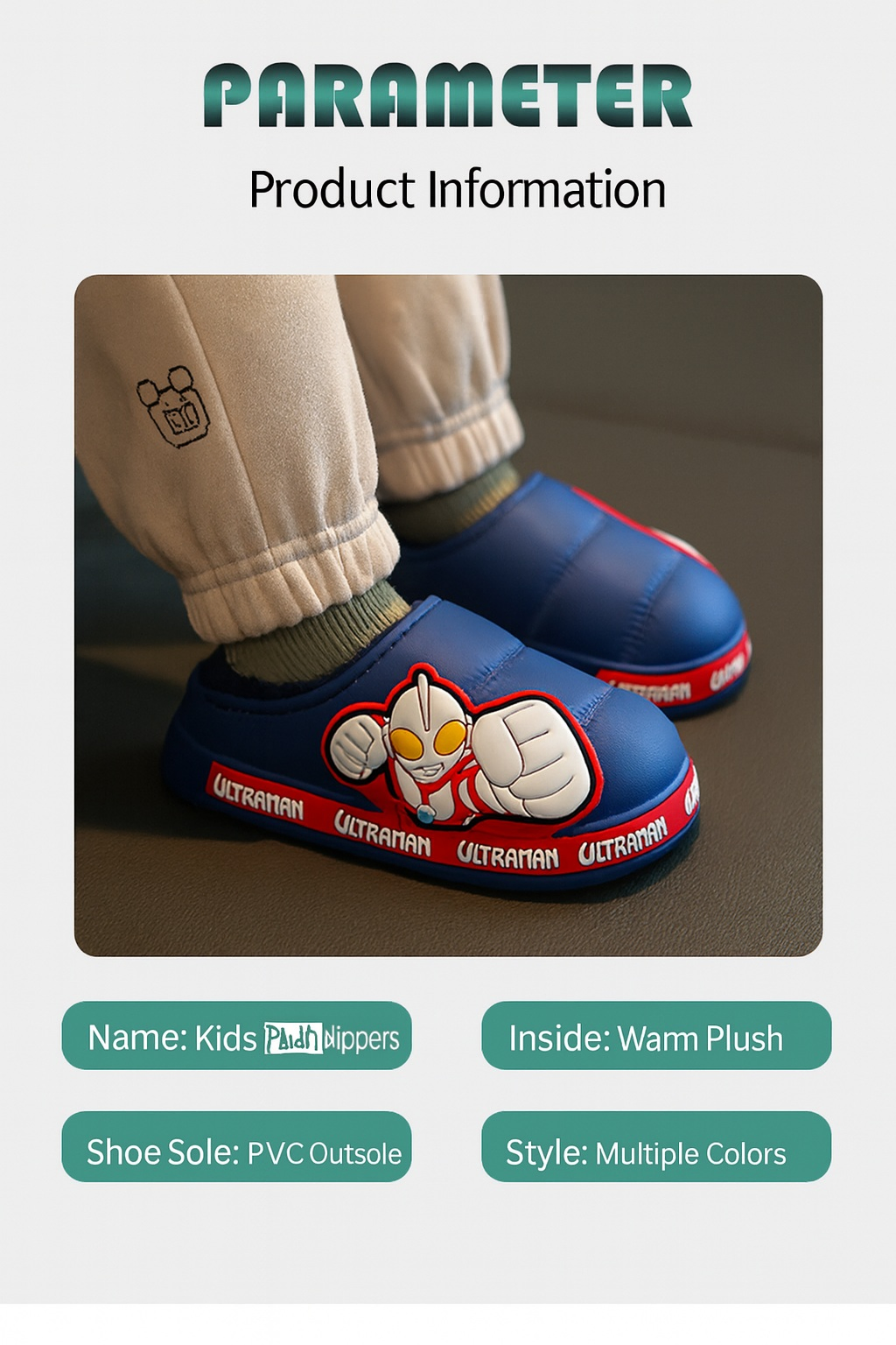 Keep little feet warm and stylish with the Ultraman Kids Winter Warm Slippers! Featuring a fun Ultraman superhero design, these slippers are made with cozy plush lining and a durable PVC sole for comfort and long-lasting wear. Perfect for indoor and light outdoor use, they combine warmth, safety, and playful charm for kids.