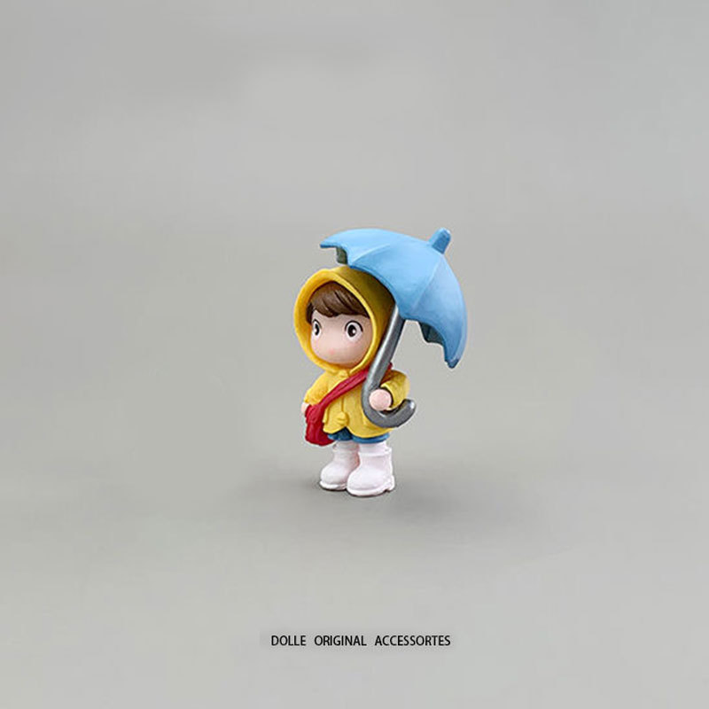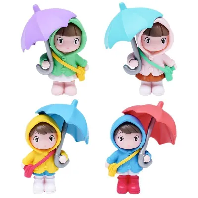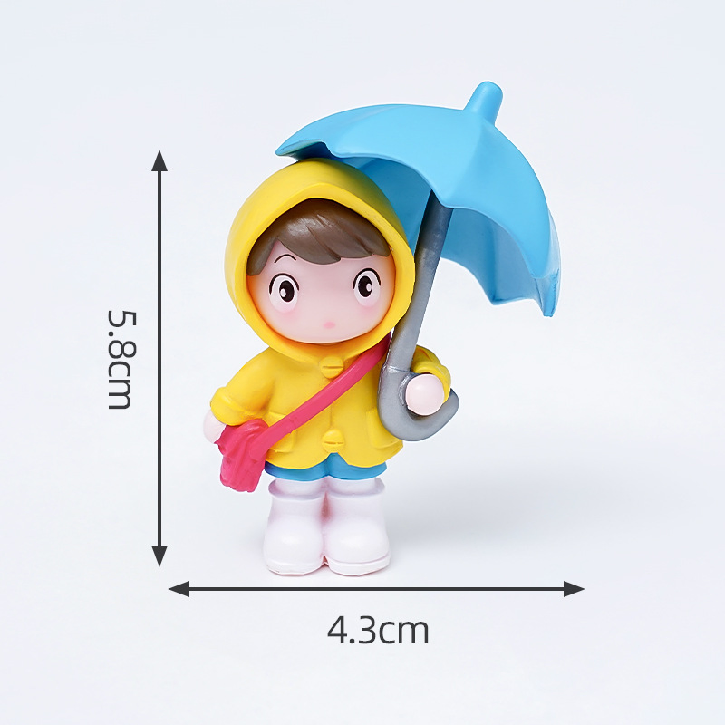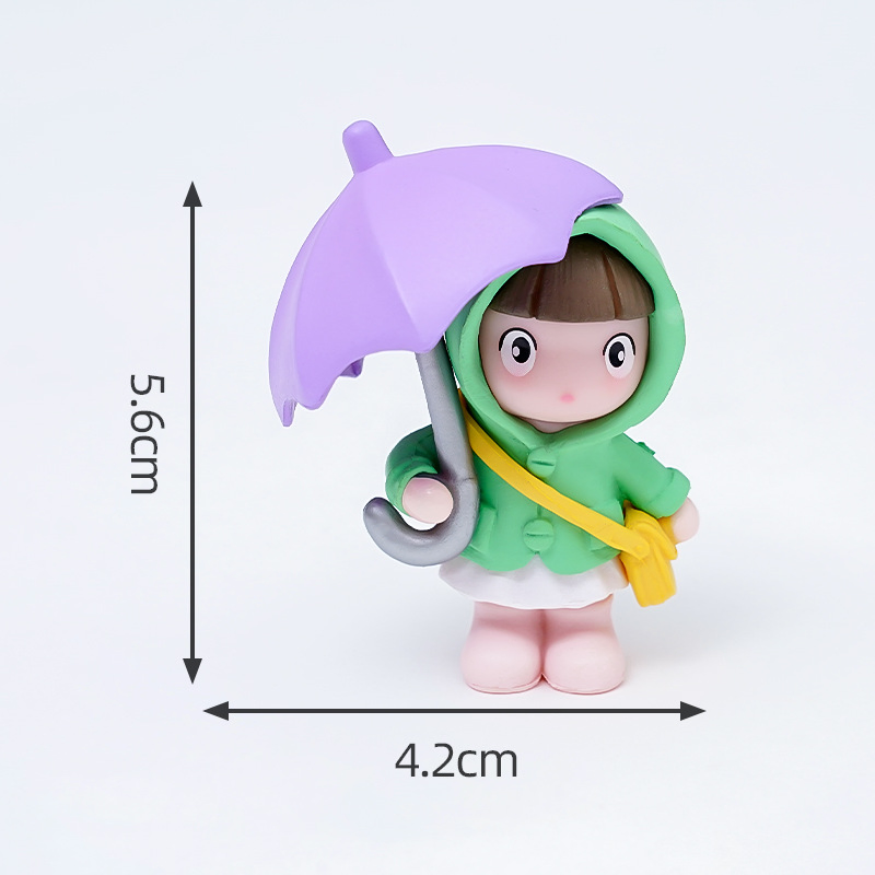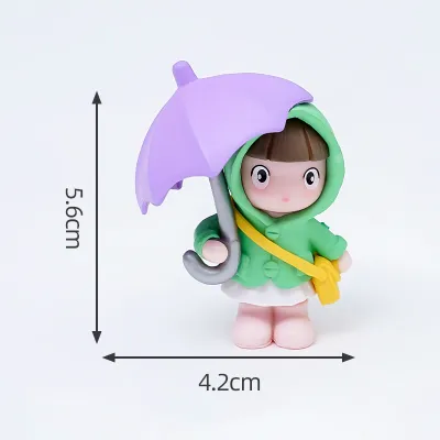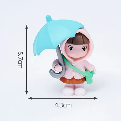 Rainy Day Girl Figurine brings charm and sweetness to your decor collection. Dressed in a pastel pink hoodie, red skirt, and white shoes, she holds a turquoise umbrella while carrying a mint-green crossbody bag — ready to stroll through a whimsical rainy day. Crafted from high-quality, durable resin, this miniature figure features fine detailing and smooth finishing, making it perfect for decorating your desk, car dashboard, shelf, or as a thoughtful gift for friends and collectors.