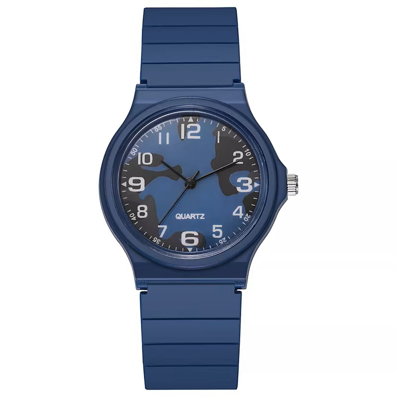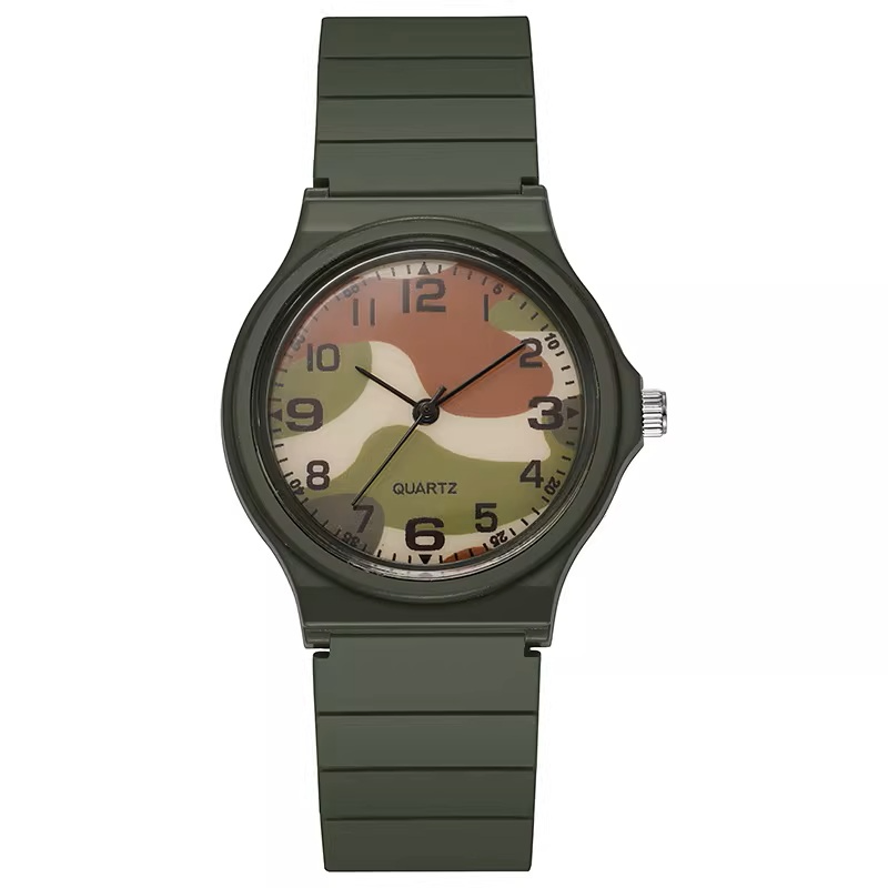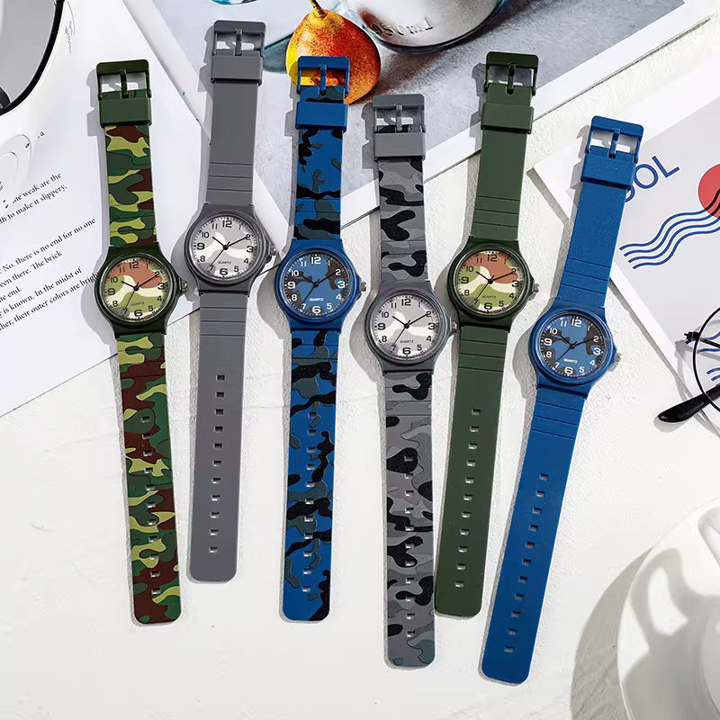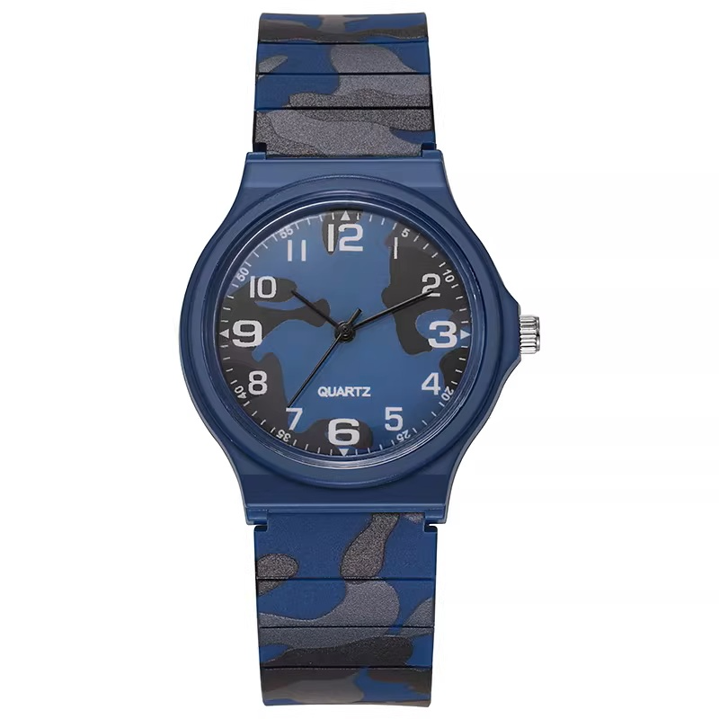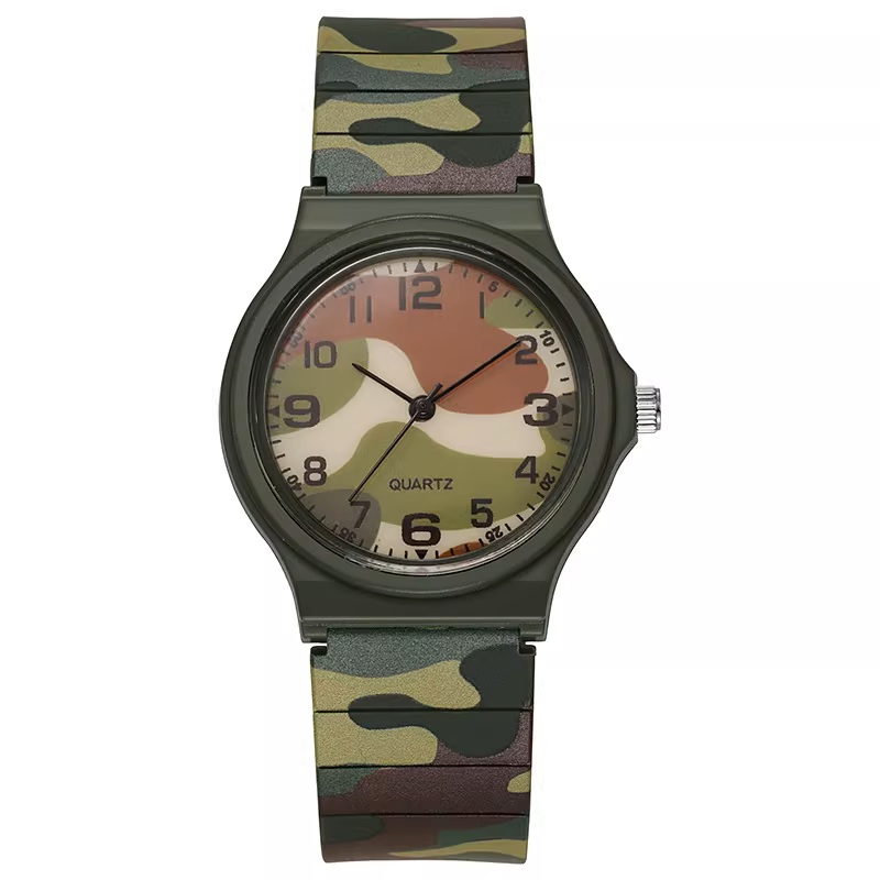 Each timepiece features a flexible resin strap that is soft on the skin but durable enough to handle sweat, dirt, and daily wear. The high-contrast watch face ensures easy readability at a glance, powered by a precision Quartz movement for reliable timekeeping. Whether you’re heading to the gym, the classroom, or a weekend hike, the slim profile and vibrant camouflage patterns make this more than just a watch—it's a statement piece.
